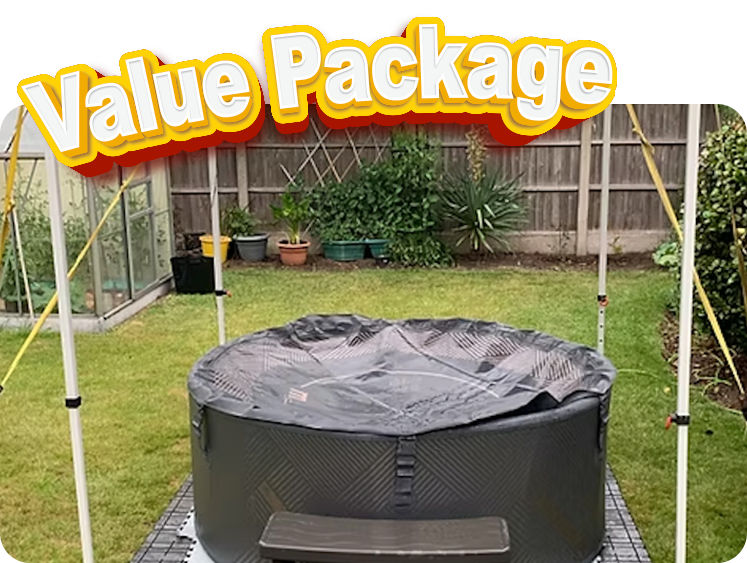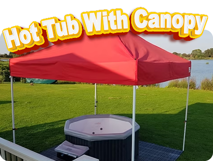 8 – Person semi-ridgid hot tub Full curtained 3m x 3m gazebo with full marquee flooring Disco lighting and powerful bluetooth boom box speaker 4 Night hire